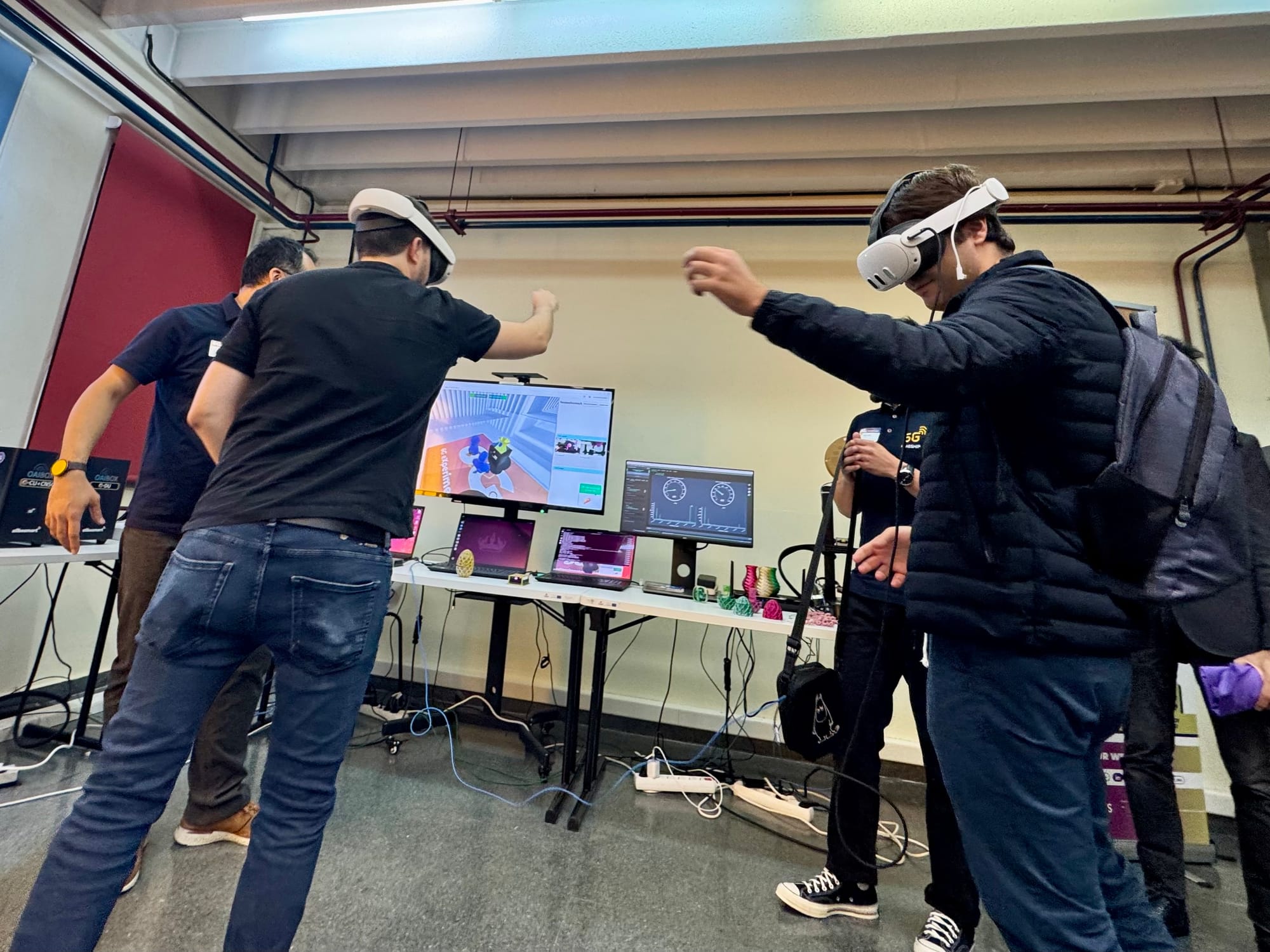 - Co-Creative Digital Twin Cyber Studio (Use Case 4): A collaborative 3D design and fabrication environment linking an XR interface with real lab equipment, showing how XR and an O-RAN 5G network can support industrial digital twins for remote manufacturing and design tasks.