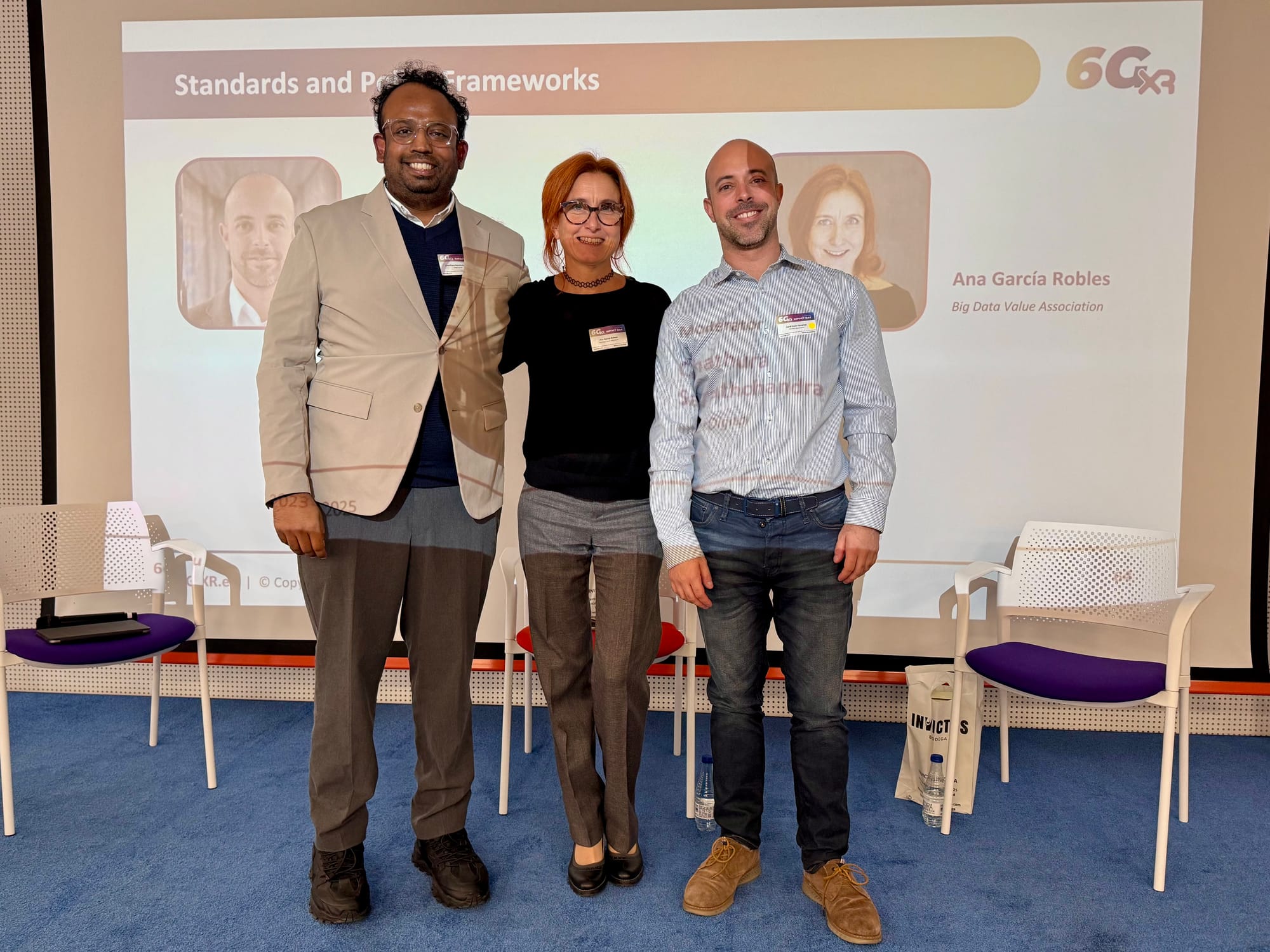 Live demos and discussions ran throughout the day. Participants saw first-hand how 6G-XR’s federated testbed enables capabilities like holographic telepresence, interactive digital twins, edge-cloud orchestration, and green networking under realistic multi-site conditions. Two high-level panels put these technical achievements into context. One panel gathered cross-sector perspectives on integrating XR and 6G connectivity across verticals such as manufacturing, media, energy, and automotive. A second panel - the one I moderated - focused on the standards, data governance, and policy frameworks needed to support these next-generation immersive services. Below, we recap the day’s key insights and takeaways for innovation professionals, technologists, and standards stakeholders.