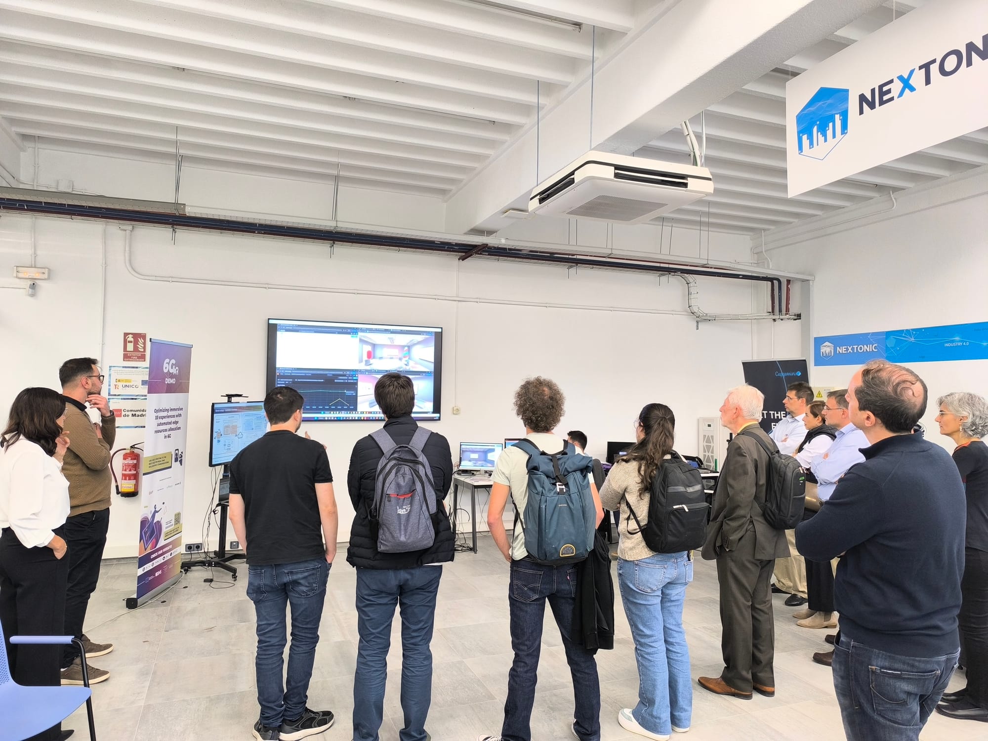 On 28 October 2025, the 6G-XR Impact Day in Madrid, Spain marked the culmination of three years of EU-backed research into 5G/6G-enabled extended reality (XR). Hosted at the NEXTONIC lab (formerly 5TONIC) in Leganés, the full-day event brought together the 6G-XR project’s partners and over 60 external experts from industry and academia. Attendees experienced live demonstrations of advanced XR use cases and engaged in discussions on the future of immersive connectivity. The agenda featured hands-on showcases of real-time holographic communication, 3D digital twin collaboration, and energy-efficient XR streaming, alongside expert panels examining how these innovations will impact industries and align with emerging 6G standards. As the Innovation Manager at of the project and a panel moderator, I witnessed firsthand how this forum brought technology developers, industry stakeholders, and policy experts together to connect, collaborate, and chart the next steps for XR and vertical industries in the 6G era .